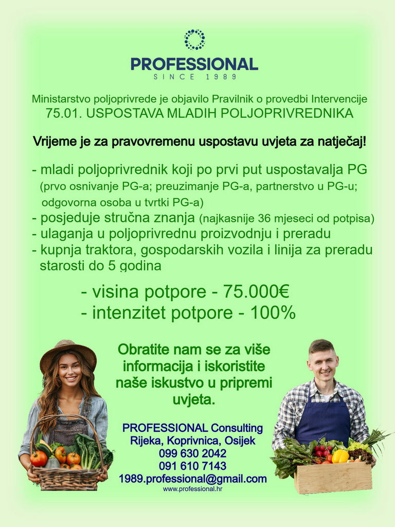 Intervencija 75.01 - uspostava mladih poljoprivrednika